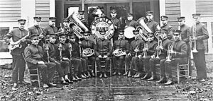 In 1888, the original band members were:  Dr. John W. Thomas, F. H. Dungan, J. V. Harless, William Mackrell, Fred Kendall, Thomas G. Husbands, Walter Dibble, Frank Adams, J. M. Austin, George Adams, Morris Myers, Xavier Myers and Wayne Robbins.  John S. Dungan was elected instructor.  Their first public performance was held at a political rally.