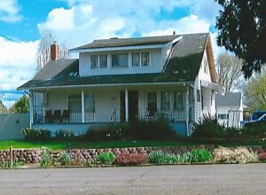The George V. & Kate Adams House is located at 521 South Molalla Avenue in Molalla, Oregon.  The architecture is the Craftsman Bungalow Style, a popular style in Molalla in the early 1900s.  This house is similar, in design, to the William & Annie Everhart house.  It is located across the street and their story is featured in the SOUTH MOLALLA AVENUE GROUP.   Although the outside of the Adams’ house has been changed, it  retains some of the original characteristics of the Craftsman Bungalow Style.  The addition of an upstairs apartment, with outside stairs, was added in the 1960s.  Two upper dormer windows, elements usually included in the Craftsman Bungalow Style, have been removed and replaced with more modern windows.  The inside of the house has many of the original design elements of the Craftsman Bungalow Style.  The house is in good condition today and is privately owned.