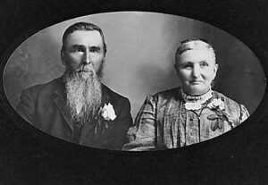 William Dupee Adams, was born at North Carolina, in 1835.  In 1841, his family moved to Illinois, where he met and married Lucina Loveridge.  Lucina was born in 1839, at New York.  Her parents were Michael Loveridge and Hannah Lyddon Loveridge.  As a young man in Illinois, Bill took up the trade of carpentry and cabinet making.  He and Lucina sold their Illinois interests in 1865, and came west.  Traveling by wagon train over the Oregon Trail, they left Illinois in mid-April, 1865, and arrived in Molalla, Oregon, in late August.  Eventually, they purchased approximately 650 acres of the Gordon Reese Donation Land claim, located about one mile east of Molalla on Adams Road.   They first lived in a log house.  Bill was a skilled carpenter and made all their furniture.  A large cannonball bed, stated to be over 100 years old, is part of the Molalla Area Historical Society’s collection.  It is made of maple and has rope springs.